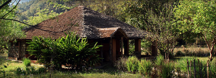 Vanghat is made up of just 4 private cottages and dining area, kitchen and researcher's quarters, bordered on all but the northeastern side by forest, which is where the Ramganga River flows.